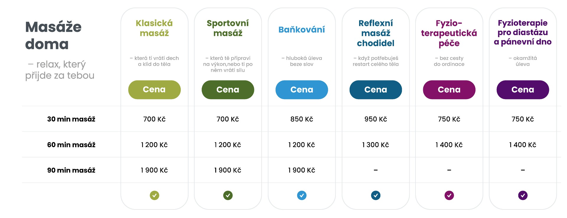 Seniorské a firemní masáže prosím objednávejte přes telefon +420 732 156 296.